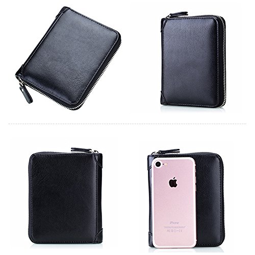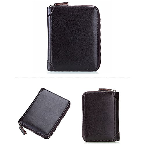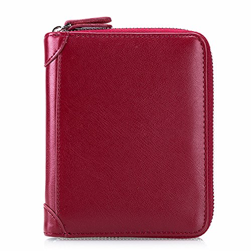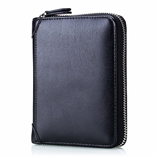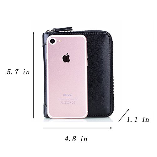 Aladin May Release: RFID Blocking Passport Holder Credit Card Holder 2 in 1 Case Wallet(CC013) Nowadays, electronic criminal is being worse and worse, our card information can be stolen or copied in any public places, like subway, restaurants, buses, airport, etc. We must be very careful for our identity information, or we will fall into trouble, especially while traveling oversea. RFID, Radio Frequency Identification denoting technologies that use radio waves to identify people and objects carrying encoded chips. These can include credit card information, passport identification or other forms of ID as well as access cards etc. By the end of 2015 almost all credit and debit cards issued in the US will have an RFID chip on them. Aladin RFID blocking Card and Passport Holder can provide 360¡aprotection for your important information. The lining of CC013 is made of a unique metal composite, which is able to block 13.56 MHz or higher RFID signals. Other Features: Size: Measures (L)5.7 x (W)4.8x (H)1.1 inches; Weight 0.5 pounds Structures: 2 transparent passport holders 40 plastic credit card sleeves Quality material: Top grain Genuine Cowhide leather, durable and comfortable feeling Heavy-duty Zipper Closure: Metal zipper, sturdy, smooth and stylish About Aladin: We devote to provide special design personal items, especially in leather product such as womens wallets, mens wallets, card cases, and various bags. All Aladin products have at least 3 months guarantee, some are longer. Thank you for choosing Aladin.