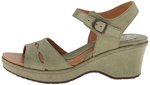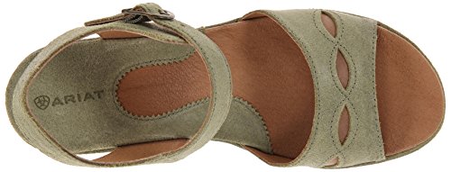 Studio : Ariat Footwear Publisher : Ariat Footwear Binding : Shoes Product Description These Sandals from Ariat feature a Premium full-grain leather upper with cut-out design in plain, glossy or metallic texture, an Open toe wedge with sling back silhouette, an Adjustable sling strap with gore and metal buckle closure, a Leather lining, a Leather-wrapped, cushioned footbed, a Lightweight cored out midsole, an ATS footbed, a Duratread outsole, a 2 1/2" leather wrapped wedge and 1" platform. 0
