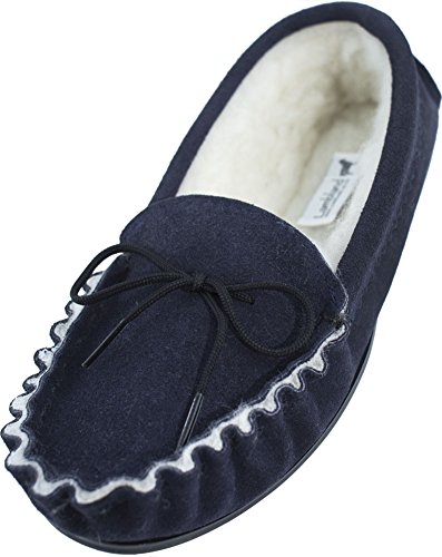 -. Title : Lambland Premium Mens Genuine Suede Moccasin Slippers with Hard Wearing Sole - Beige, Navy, Brown