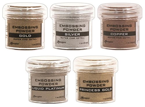 Cardmaking: Heat Embossing - Metallic - Gold, Silver, Platinum, Copper & Princess Gold - 5 Item Bundle