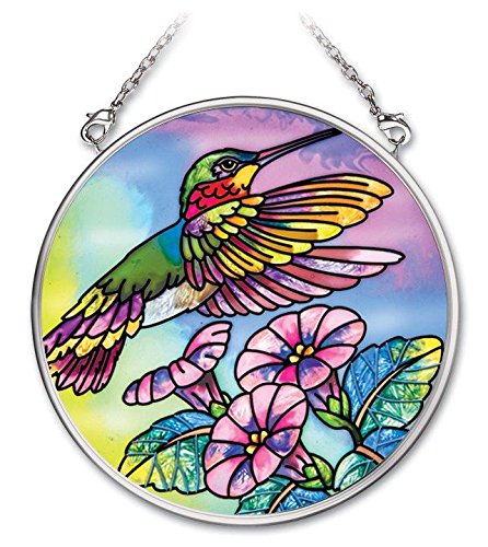 Amia 3-1/2-Inch Circle Hand-Painted Glass Suncatcher, Hummingbird and Morning Glory, Small