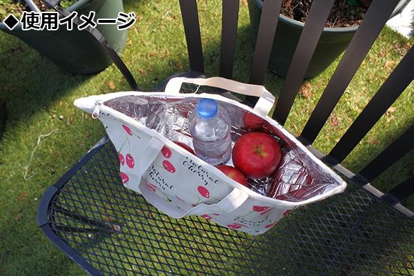 内側がクーラーバッグになっているので、お買い物にピッタリです。