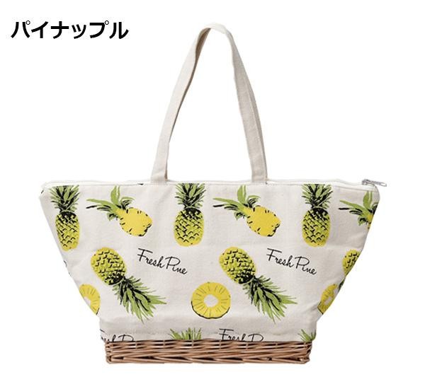 fk094igrjs内側がクーラーバッグになっているので、お買い物にピッタリですサイズ約W43×D18.5×L41cm(持ち手含む)個装サイズ:43×19×41cm重量個装重量:499g素材・材質コットン、柳、アルミ製造国中国フルーツ柄のトート型のクーラーバッグ☆内側がクーラーバッグになっているので、お買い物にピッタリです