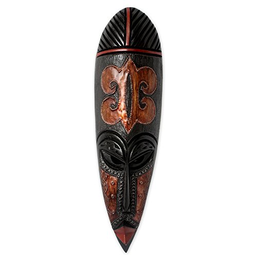NOVICA Decorative Ghanaian Large Wood Mask, Red and Black 'Fire Walker'