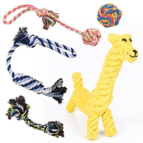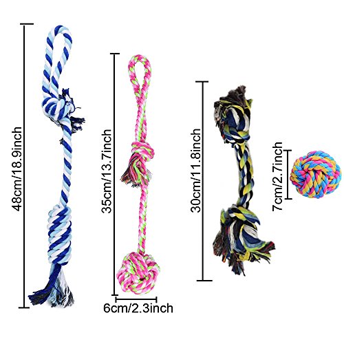 The rope chew toys made of cotton threads. 100% safe and non-toxic. Featured solid knots that helpful on teeth cleaning, gums massage and stress relief while dogs play and chew. Especially suitable for young dogs. They need something to chew when their tooth are growing. It is helpful for dental health, reduce dental calculus and other diseases. Dog Chew Toys are the best choice.