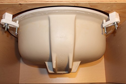 Easy installation of undermount bathroom vanity sinks. No drilling or gluing to your finished countertop. The sink mount bracket connects to your wood cabinet top or rough top plywood.