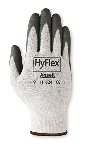 Ansell HyFlex 11-624 Dyneema/Lycra Glove, Cut Resistant, Black Polyurethane Coating, Knit Wrist Cuff, Medium, Size 8 (Pack of 12 Pairs)
