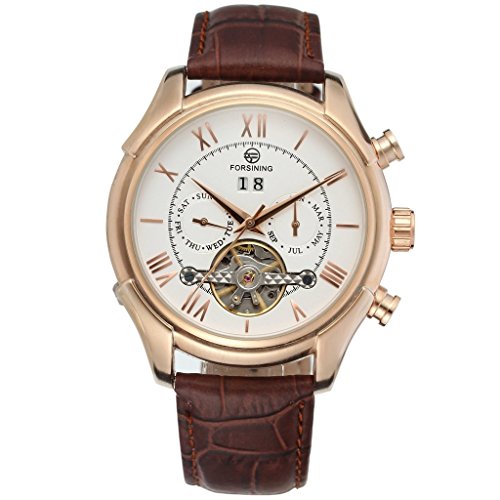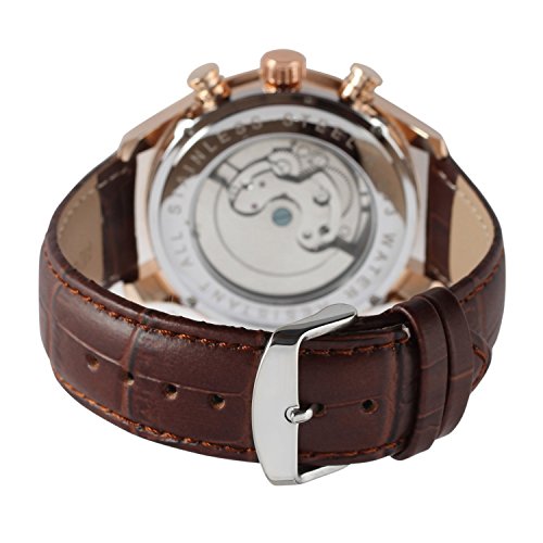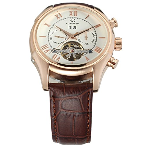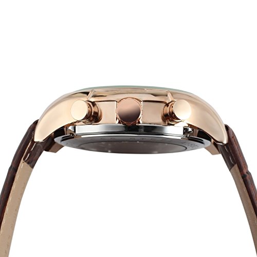 GuTe Mechanical GuTe출품 to 루비 맨즈 손목시계 가죽 밴드 날짜 캘린더 자동 감기 기계식 로즈 골드 흰색