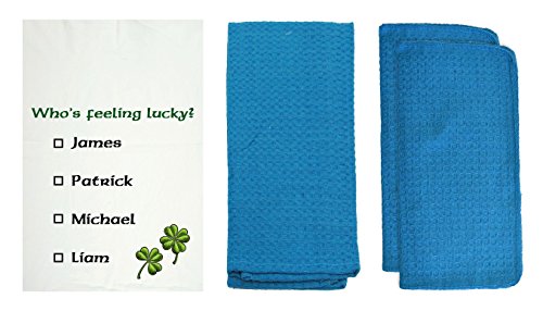 R&R Textile Mills 8 Piece Personalized Who's Feeling Lucky Dishcloth Set, Aqua