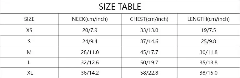 Item Size:XS/S/M/L/XL