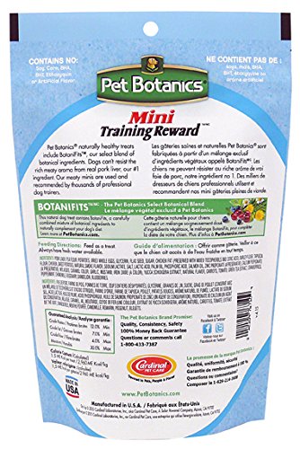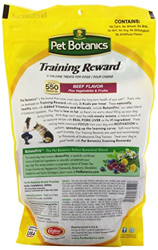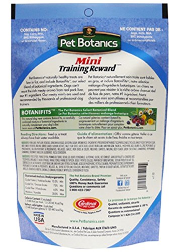 -. Binding : Misc. -. Brand : Pet Botanics -. Feature : Perfectly sized for training / Great to give as a reward / Made with real beef, chicken, or bacon / Easy to carry in your pocket or treat bag / Moist texture that won't crumble or break -. Label : Cardinal Laboratories -. Manufacturer : Cardinal Laboratories -. Model : CRP-012-P -. MPN : CRP-012-P -. PackageQuantity : 1 -. PartNumber : CRP-012-P -. ProductGroup : Pet Products -. ProductTypeName : PET_SUPPLIES -. Publisher : Cardinal Laboratories -. Studio : Cardinal Laboratories -. Title : Pet Botanics Training Rewards Mini Treats for Dogs