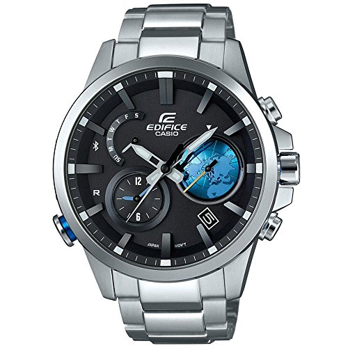 -. Title : Casio Edifice EQB600D-1A2 Bluetooth Watch w/ 3-D Black Globe Dial Stainless Steel