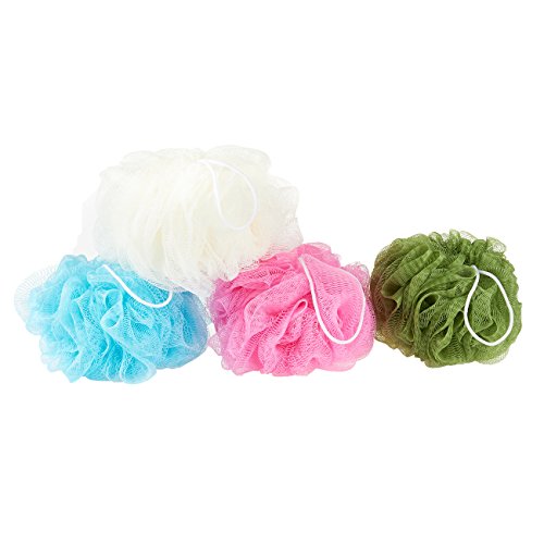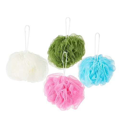 LUXURIOUS BATH POUF SET: Includes 4x Mesh Shower Puffs. Comes in appealing colors of White, Green, Blue, and Pink that will add a dynamic touch to your bathroom.