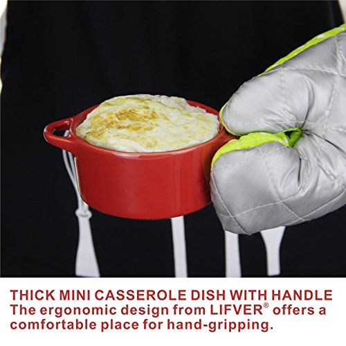 THICK MINI CASSEROLE DISH WITH HANDLE - The ergonomic design from Lifver offers a comfortable place for hand-gripping, preventing you from heat and helps you to get your mini casserole dish when you making mini pot pies, crème brulée, soufflés.