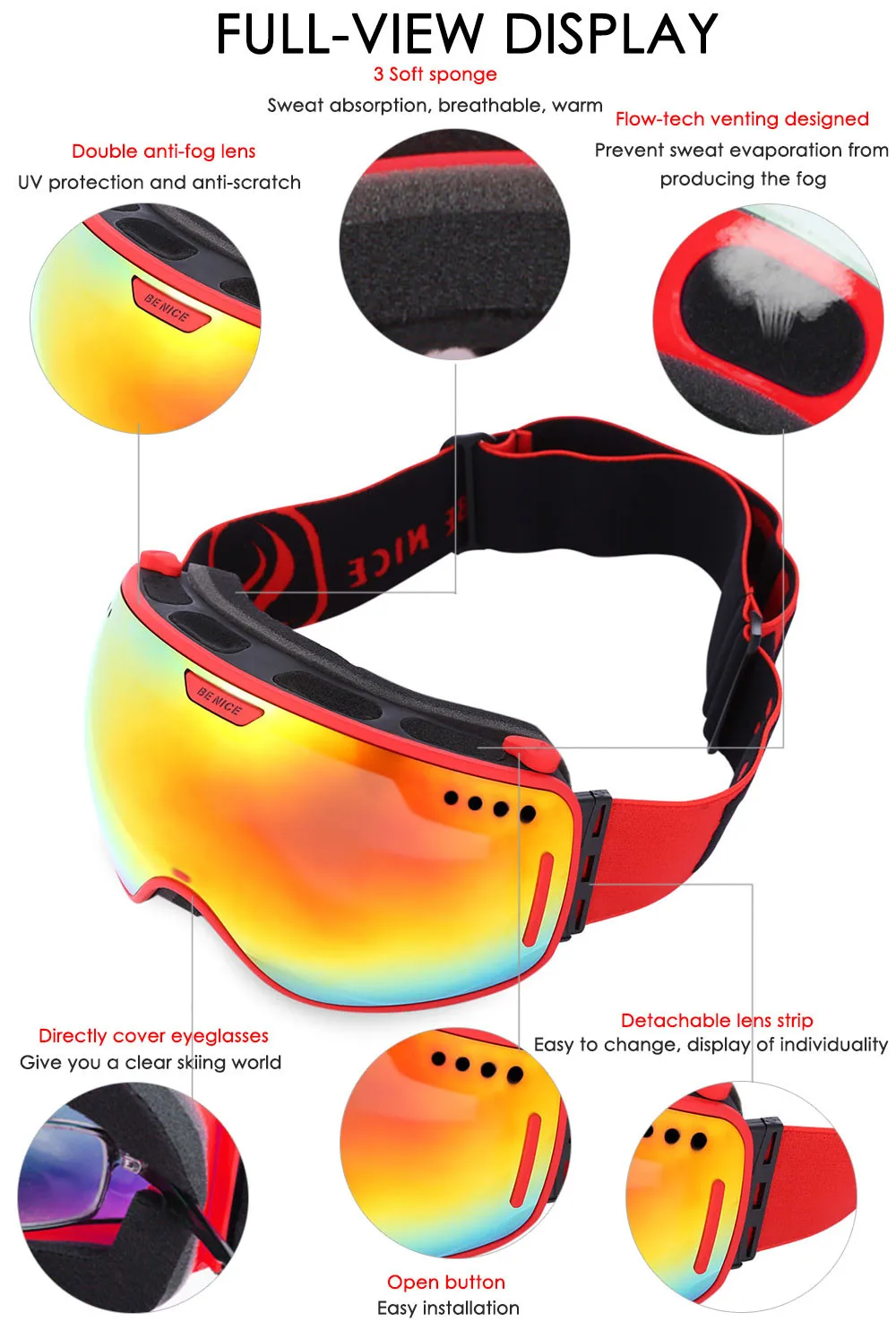Feature:PC and UV double layer anti-fog lens, PTU frame, water resistant, wind