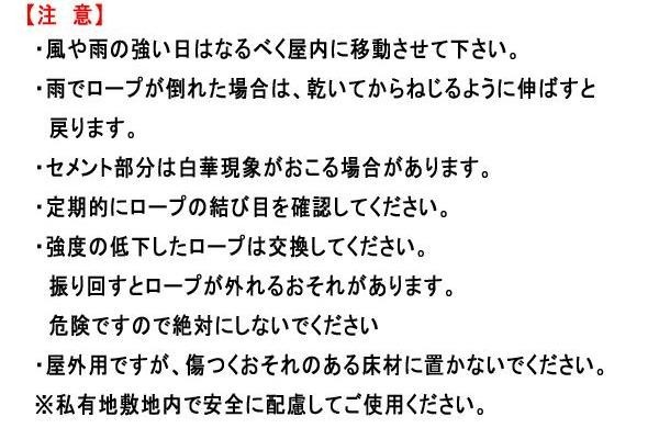 | 素材・材質 | 本体:コンクリート ロープ:ランバーロープ(PP) |
