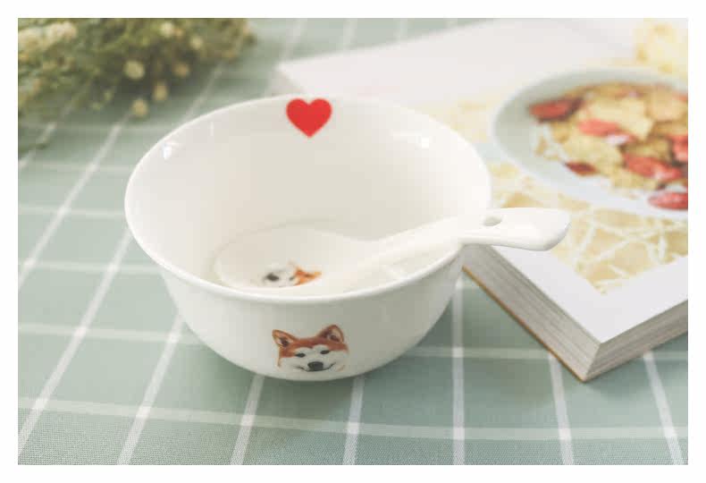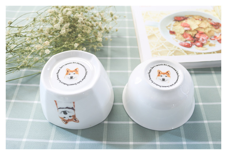 可爱秋田犬系列陶瓷米饭碗圆形小碗四方陶瓷汤碗创意动物家用餐具