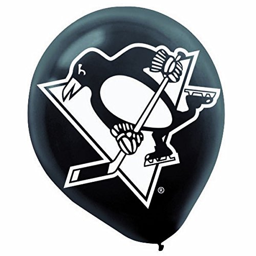 Sports and Tailgating NHL Party Pittsburgh Penguins Printed Latex Balloons Decoration, Black and White,12", Pack of 6