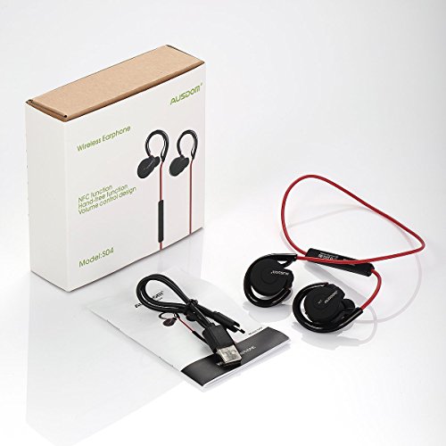 Feature : Featuring a stylish, interchangeable ear-hook pattern, AUSDOM S04 lightweight earbuds are comfortable and flexible. Sweat-proof and water-proof earpiece design makes them fit neatly and securely inside your ear, free up your hands and afford a full range of motion while working out or in daily multitasking. / Signal Enhance Technology Bluetooth ISSC v3.0 with NFC/ Built-in microphone and controls for phone calls, volume, and music playback. / Noise Cancellation technology reduces outside noises, enable clearer sound from microphone, you get high quality, hands-free phone conversation even on the street or inside shopping mall. / Up to 5.5 hours of battery life for both talk and audio playback (iPhone displays headset battery meter). / Ergonomic design optimized for ultimate wearing comfort to match your active lifestyle like running, jogging, cycling, driving, camping, hiking, gym exercise and other outdoor sports. Compatible with most Bluetooth-enabled cell phones.