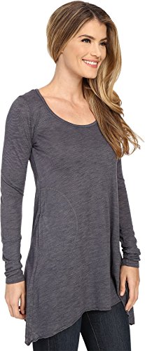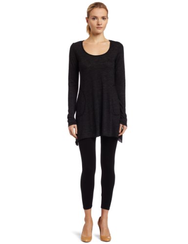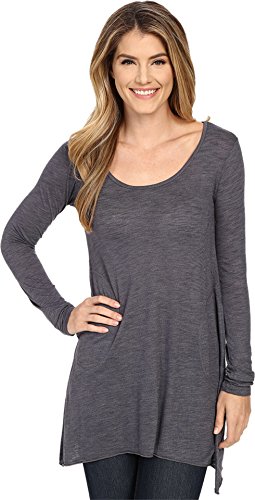 Scoop neck. Allover heathered fabric for a soft look. Round hand pockets at front hip. Loose fit through body. Handkerchief hemline. Tonal stitching. 34' length. 50% rayon, 25% cotton, 25% polyester. Machine wash cold, tumble dry low. Made in the U.S.A.