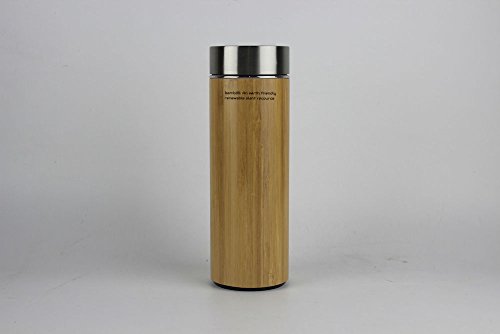 This Thermos is the newest addition to the evrchill line of thermoses. It uses 100% real bamboo for construction along with a stainless steel interior to preserve quality. Double-Walled vacuum technology allows this thermos, like our other products, to preform very well over time, this thermos can keep your drink ICE COLD for 12 hours. It can hold up to 12 fluid ounces of liquid. A removable strainer keeps ice back while drinking and acts as a tea strainer.Feature