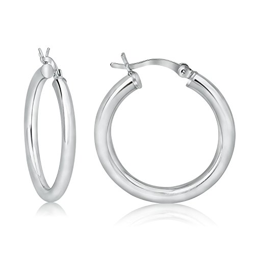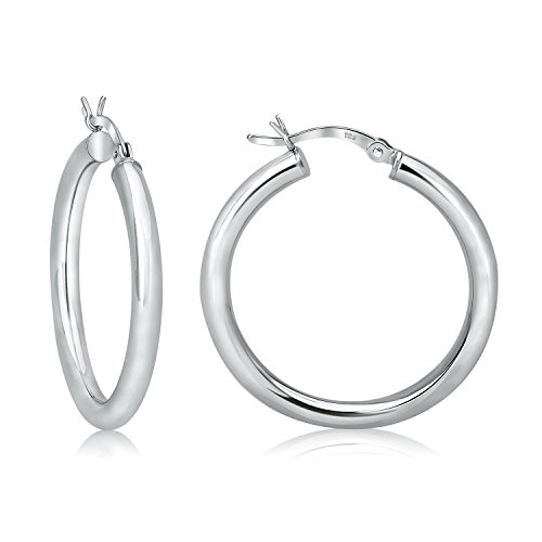 An easy, everyday style at affordable price the American silversmiths have created these polished sterling silver round hoops that have all the appeal of a classic plain hoop design.