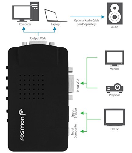 Fosmon High Resolution TV to PC [Composite RCA / S-Video to VGA] Video Converter Box - Black