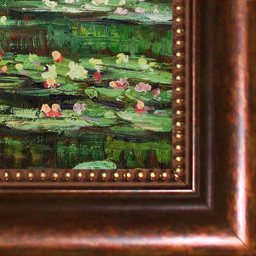 -. Binding : Misc. -. Brand : overstockArt -. Color : Green -. EAN : 0688576835044 -. Feature : Framed painting size (not including frame): small 8-inch x 10-inch / Framed painting size (exterior dimensions inches): 12-inch by 2-inch / 100-percent handmade oil painting on artist grade canvas - certificate of authenticity included / Framed paintings arrive ready to hang on your wall with hanging hardware included / White water lilies, 1899 - framed oil reproduction of an original painting by claude monet -. Label : Overstock Art LLC -. Manufacturer : Overstock Art LLC -. Model : MON1430-FR-93018X10 -. MPN : MON1430-FR-93018X10 -. NumberOfItems : 1 -. PackageQuantity : 1 -. PartNumber : MON1430-FR-93018X10 -. ProductGroup : Home -. ProductTypeName : HOME -. Publisher : Overstock Art LLC -. Studio : Overstock Art LLC -. Title : overstockArt Monet White Water Lilies 1899 Painting with Verona Cafe, Coffee Brown Patina Finish -. UPC : 688576835044