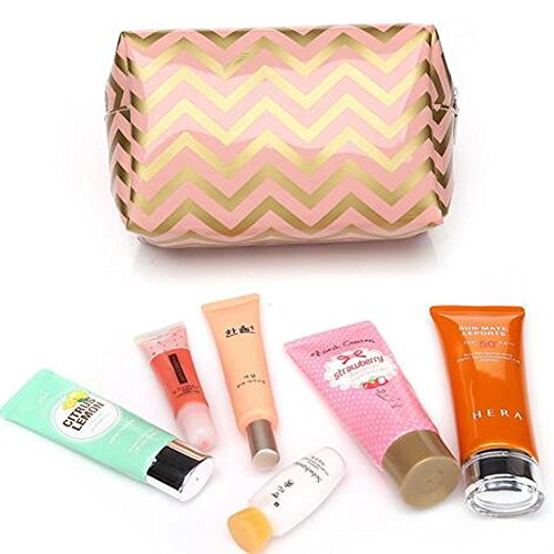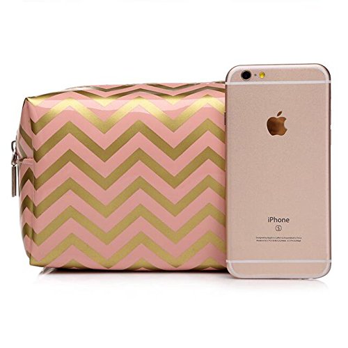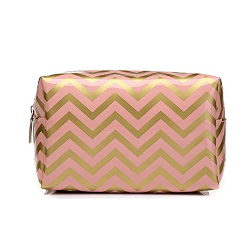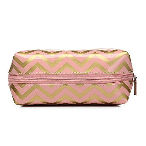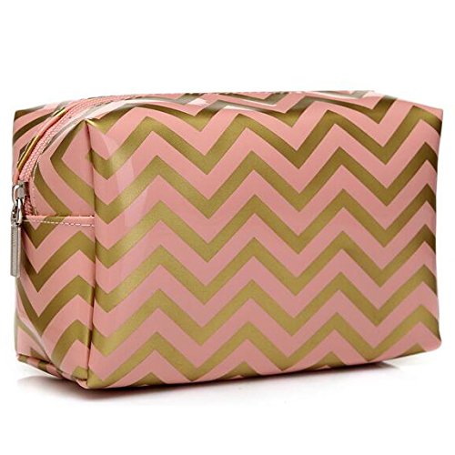 HOYOFO Portabel Makeup Pouch Travel Cosmetic Bags Handy Makeup Bag for Women,Pink Chevron