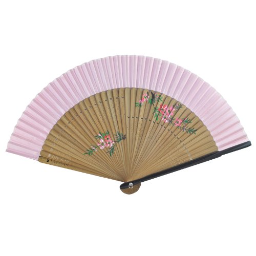 Bamboo Folding Fan - Hand Painted Flower - Pink