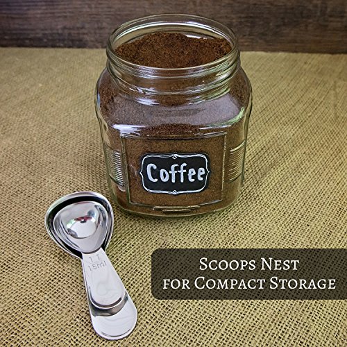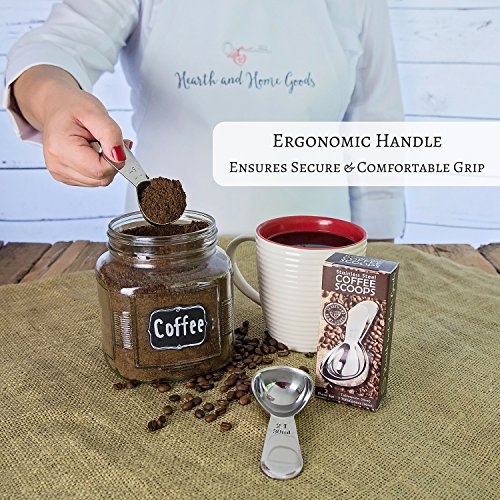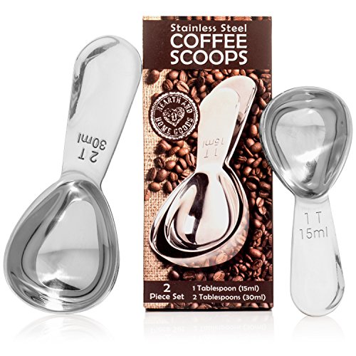 Coffee Scoop Set - Stainless Steel Measuring Spoons - Perfect Accessories for an Accurate Measure of Tea, Sugar, Ground Coffee and Whole Bean - 1 and 2 Tbsp Scooper by Hearth and Home Goods