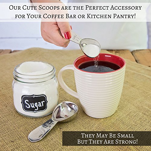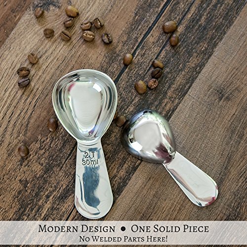 - MODERN DESIGN AND HEAVY DUTY: Our polished, stainless steel metal scoops are one solid, durable piece. Making them the best choice – whether they are used at home; for constant commercial use by a professional barista in a coffee shop; for the office or camping in an RV. They are dishwasher safe, so clean up is easy and they are rust free. Of course, they are reusable therefore eco friendly.