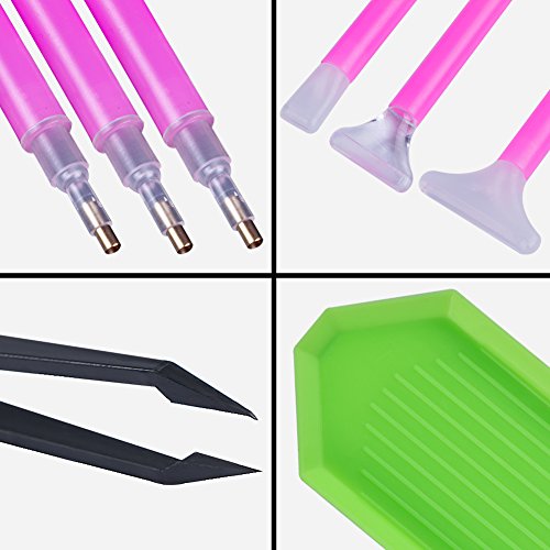 - Package includes: 6 x diamond sticky pen in 3 different types, 10 x clay, 2 x plastic plates, 1 x tweezers and 10 x small transparent bags, a complete set of DIY diamond painting tools, convenient for you craft job.