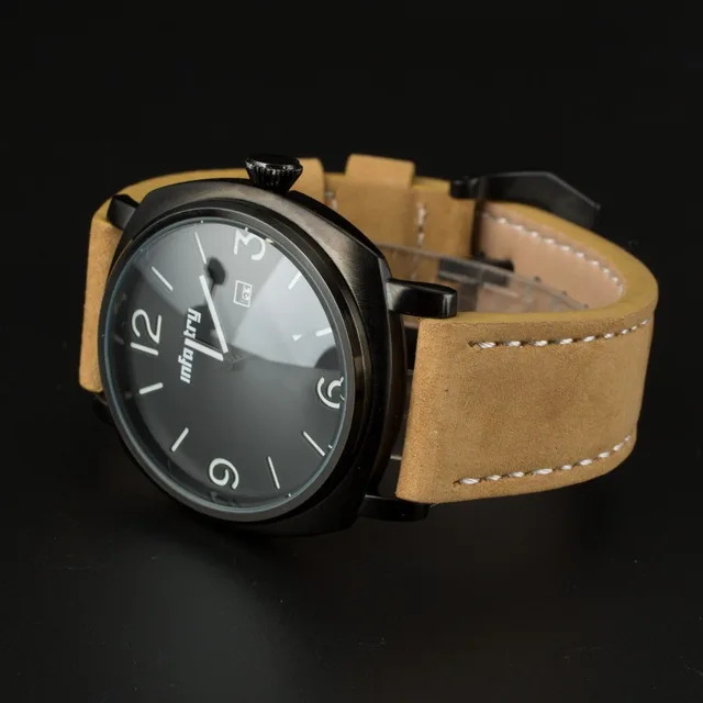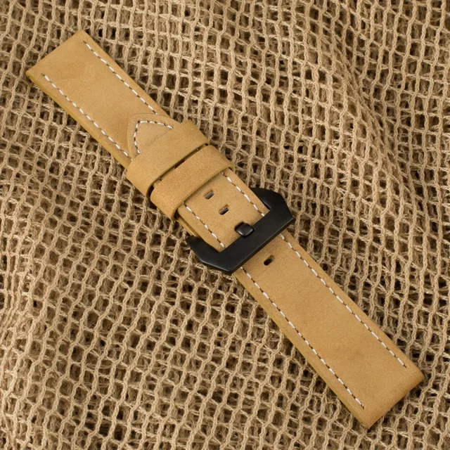 보병 22 미리메터 시계 스트랩 높은 품질 빈티지 정품 가죽 시계 스트랩 손목 군사 시계 블랙 버클