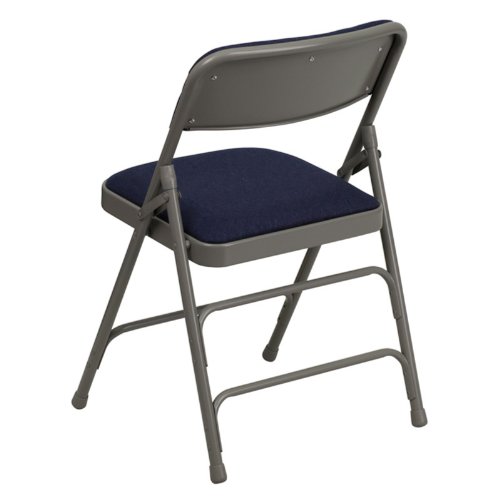 - Feature : Commercial grade folding chair, 18-1/2-inch width by 19-inch depth by 30-inch height / Folds for organized storage / Beige fabric upholstered seat and back / 1-inch Thick Foam Padded Seat / Constructed of .22mm x 1.2mm round steel pipe