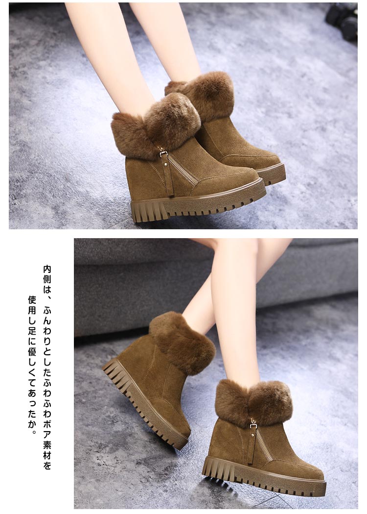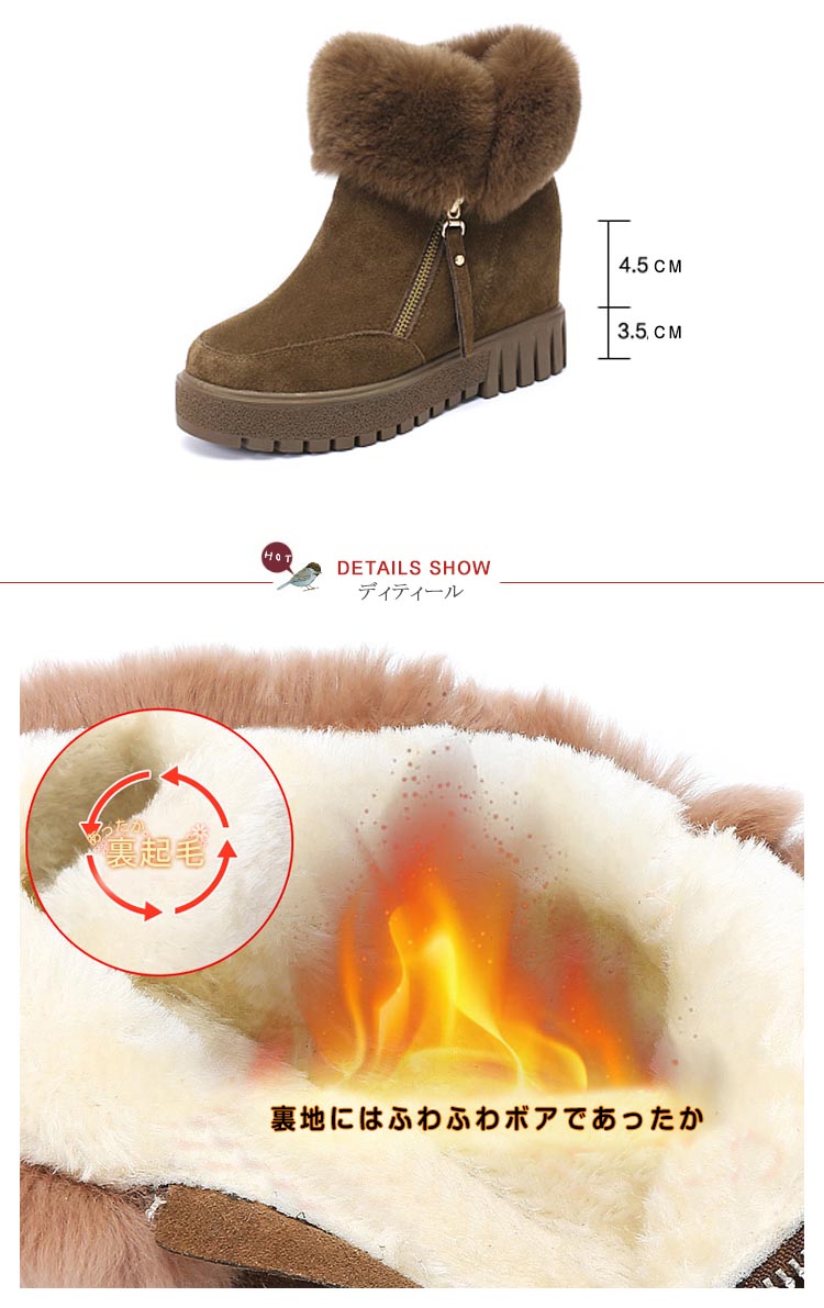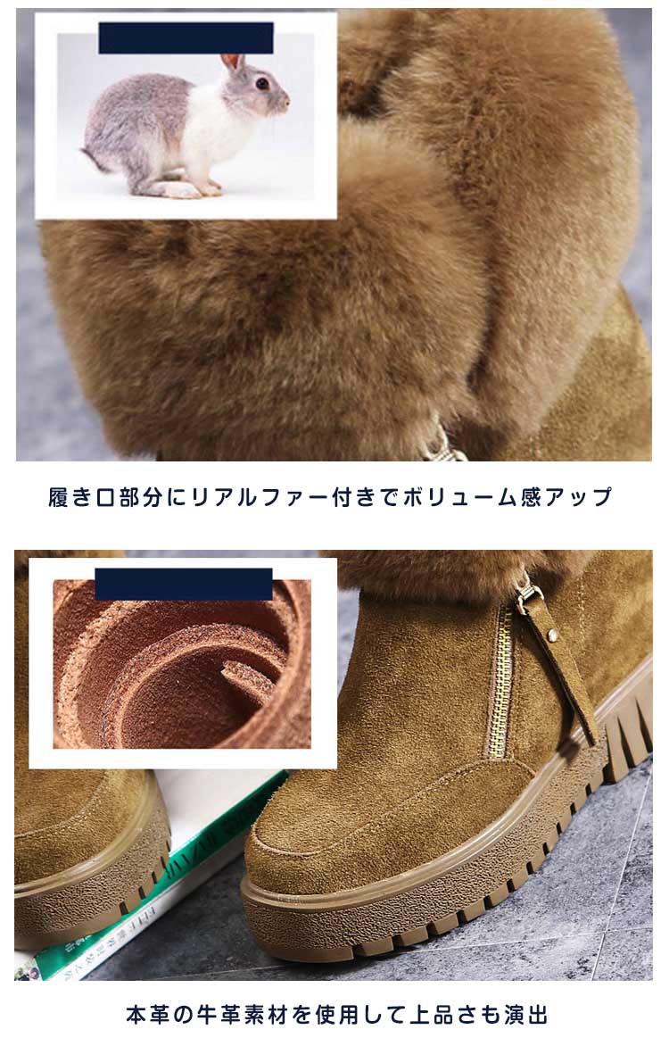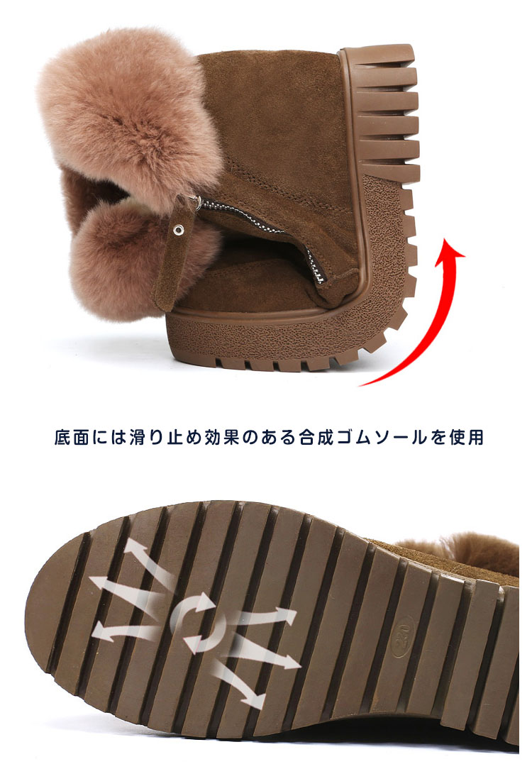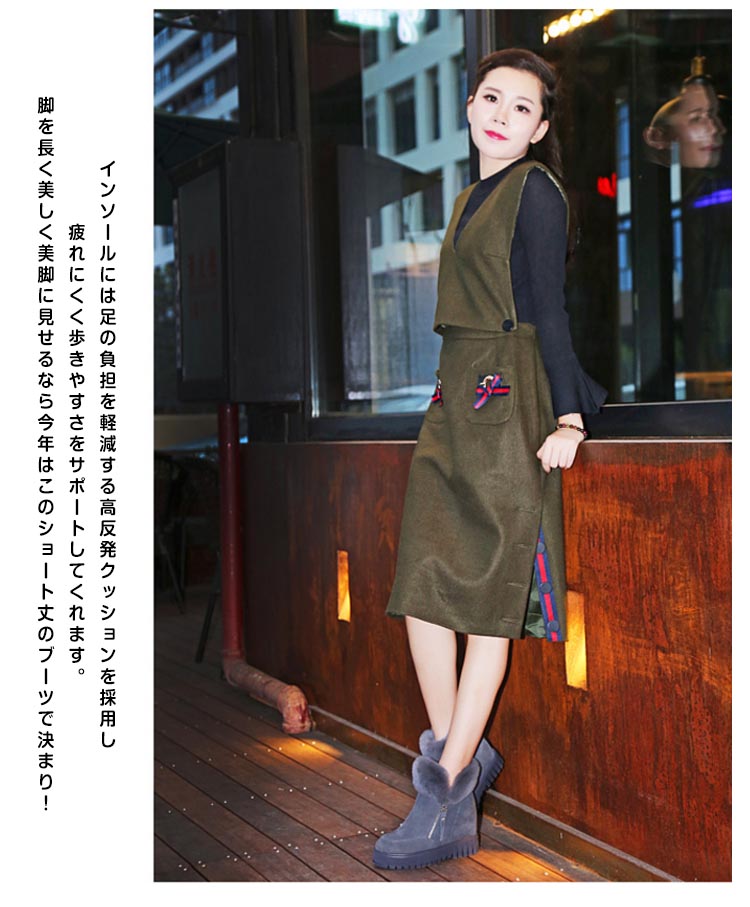 | トレンドな足元に大変身!もこもこリアルファーショートブーツが誕生しました!ウェッジソールタイプになっているので、歩くときも歩きやすく、安定感があります。内側は、ふんわりとしたふわふわボア素材を使用し足に優しくてあったか。インソールには足の負担を軽減する高反発クッションを採用し疲れにくく歩きやすさをサポートしてくれます。脚を長く美しく美脚に見せるなら今年はこのショート丈のブーツで決まり! | |