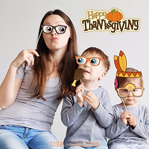[USA-SALES] Thanksgiving Day Photo Booth Props, Happy Thanksgiving Photo Booth Props Decorations, Attached to the stick NO DIY REQUIRED, by USA-SALES Seller