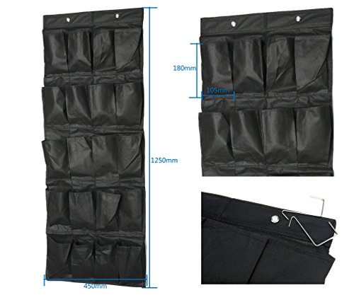 -. Binding : Kitchen -. Brand : Micro Trader -. EAN : 0702921711163 -. Feature : Expansion size: approx. 1250mm (L)*450mm (W) / Tough and durable construction. / 20 pockets. Single small bag size: approx.180mm (L)*105mm(w) / Hangs over any standard door. / Comes with 2 metal over door hooks. -. Label : Micro Trader -. Manufacturer : Micro Trader -. PackageQuantity : 1 -. ProductGroup : Home -. ProductTypeName : HOME -. Publisher : Micro Trader -. Studio : Micro Trader -. Title : Black 20 Pocket Hanging Over Door Closest Bag Tidy Space Saver Shoe Organizer -. UPC : 702921711163