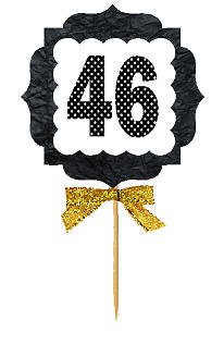 46th Birthday / Anniversary Gold Ribbon Hand Crafted Novelty Cupcake Decoration Toppers / Picks -12ct