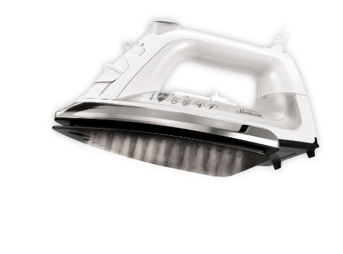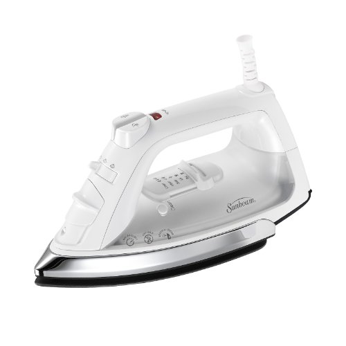 SUNBEAM CLASSIC 1200 WATT MID-SIZE ANTI-DRIP NON-STICK SOLEPLATE IRON WITH SHOT OF STEAM/VERTICAL SHOT FEATURE AND 8' 360-DEGREE SWIVEL CORD, WHITE/CLEAR, GCSBCL-317-000