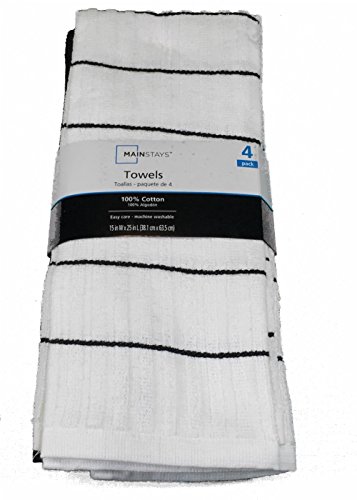 Kitchen Hand Towels - 100% Cotton - Pack of 4 - Rich Black