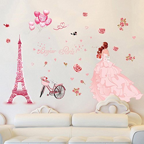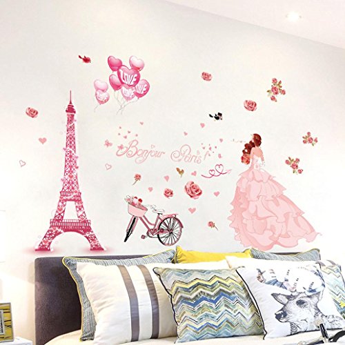 -. Title : Iuhan Bonjour Paris wall sticker lovely sweet girl with rose mural Decor Bedroom Home sticker Wall