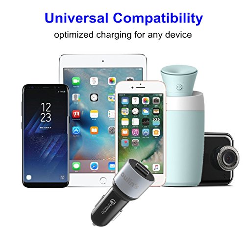- Dual USB Charging Port:Qualcomm Quick Charge 3.0 Technology, Provides 4x faster charging speed to compatible devices,QC 3.0 charges devices up to 80% in just 35 minutes,2.4 A USB port charges up to 2.5X faster than usual car charger.