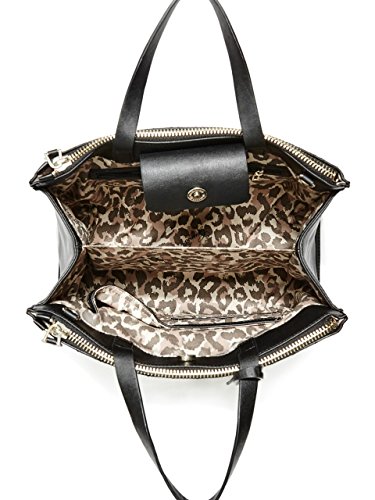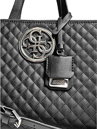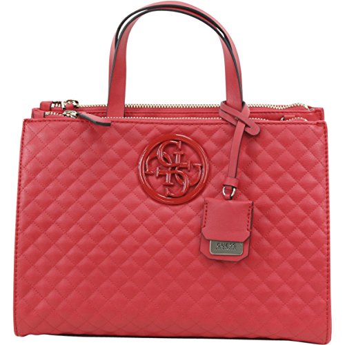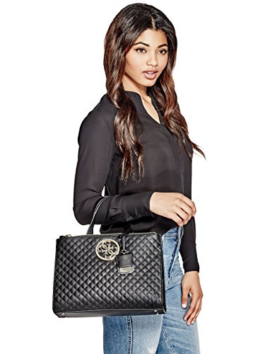 Designed with matte faux leather, this stylish satchel features allover quilting, pale gold-tone hardware and a logo at the front for a trend-right look. Divided zipper compartments and magnetic top closure.Feature