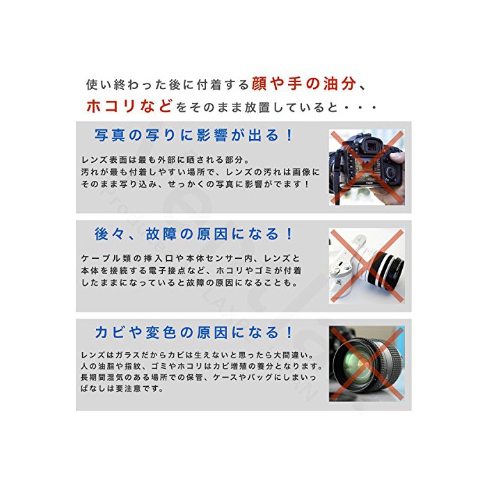 【사진이 찍히게 영향이 나온다】【먼 훗날,고장의 원인이 된다】【 곰팡이나 변색 원인이 된다】【렌즈 등의 열화(품질이나 성능 등이 나빠짐)의 원인이 된다】