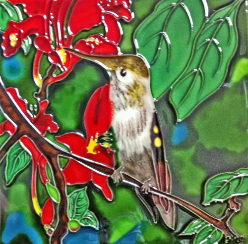 Continental Art Center BD-2022 8 by 8-Inch A Single Hummingbird with Red Flower Ceramic Art Tile