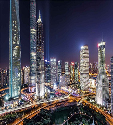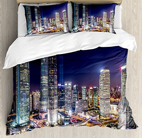 (Ambesonne)/Bedding Bath/Bedding/DIRECT FROM USA/Urban Duvet Cover Set by Ambesonne, Skyline Illuminated Skyscrapers in Modern City at Night Arc...
