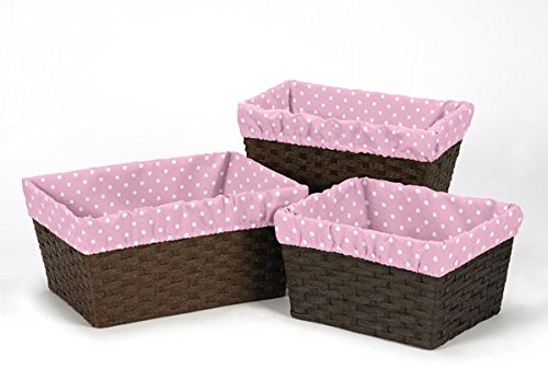 Sweet Jojo Designs 3-Piece Fits Most Basket Liners for Skylar Pink and White Polka Dot Bedding Sets