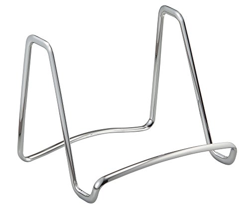 mDesign Kitchen Cookbook Holder, Picture Display Easel, Decorative Plate Stand - Chrome