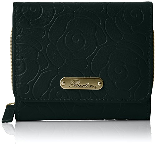 Studio : Buxton Publisher : Buxton Binding : Apparel Product Description Naturally milled rose embossed leather, custom dyed, with satin gold tone logo plaque/hardware rose garden expandable clutch features a full flap closure and outside coin purse, 2 i.D. Windows, multiple credit card slots, multiple slip pockets, 1 gusseted slip pocket, 2 i.D. Windows, multiple credit card slots, multiple slip pockets and 1 gusseted slip pocket. 0